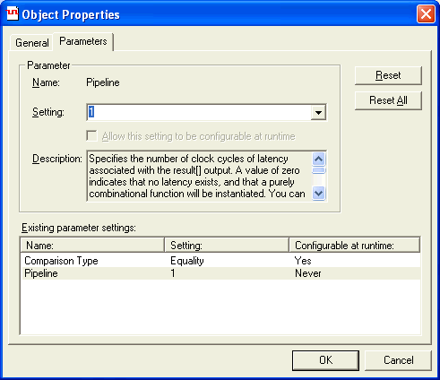 After you finalize the advanced trigger condition setup, you can disable runtime configuration and, if necessary, enable pipelining for the Equality object by performing the following steps: