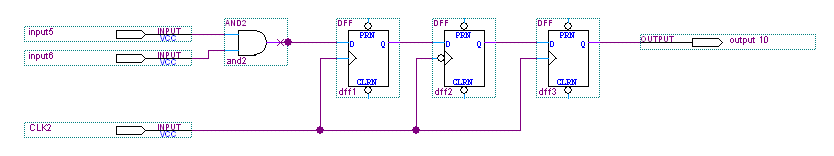 The following image shows an example where a clock signal source drives a cascaded register triggered by different clock edges: