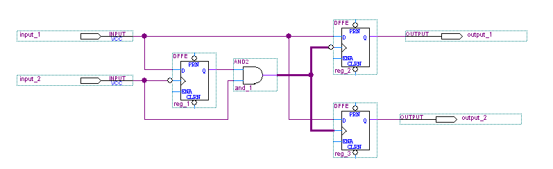 A design should not contain a gated clock that fans out to fewer than the pre-defined number of clock ports. To effectively reduce power consumption using gated clocks, you should make sure all the gated clocks in a design each fan out to at least the pre-defined number of clock ports. The following image shows an example of a gated clock that feeds more than the pre-defined number of clock ports: