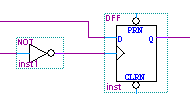 An inverter that drives the input clock port of a register in a design, and therefore allows you to use the negative edge of the clock for the register, should not be implemented with a logic cell. The following image shows an example of an inverter implemented with a logic cell: