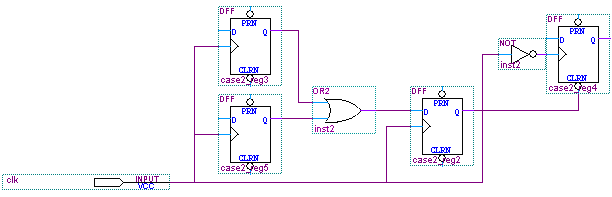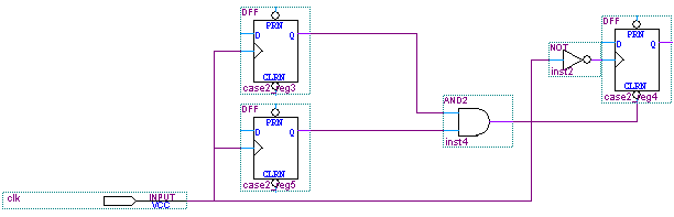 The following image shows an example of synchronized combinational logic that is used as a reset signal: