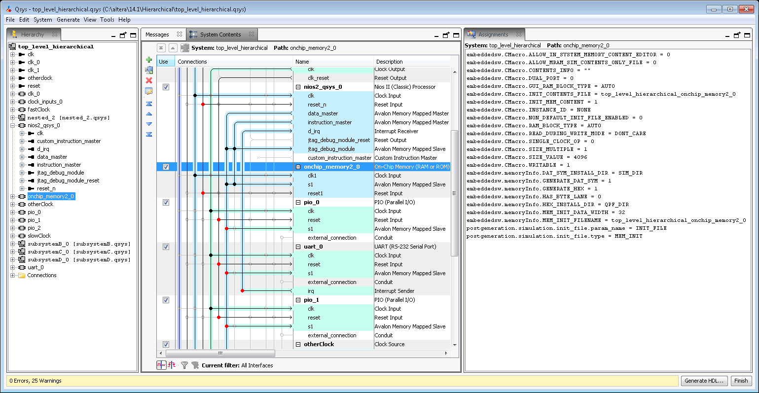 Assignments Tab (View Menu) (Qsys Pro) You open this tab in Qsys Pro by clicking View > Assignments. Allows you to view assignments for the selected module.