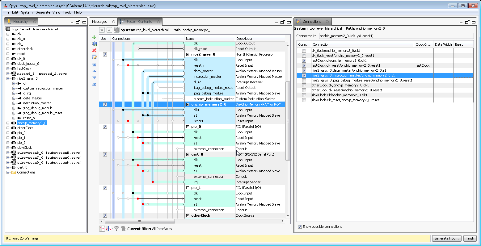 Connections Tab (View Menu) (Qsys Pro)