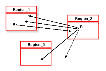 In the above example, node A in Region_1 has one fan-out, to Region_2. Node B in Region_2 has four fan-outs— two to Region_1, one to Region_3, and one to a location outside any LogicLock® Plus region.