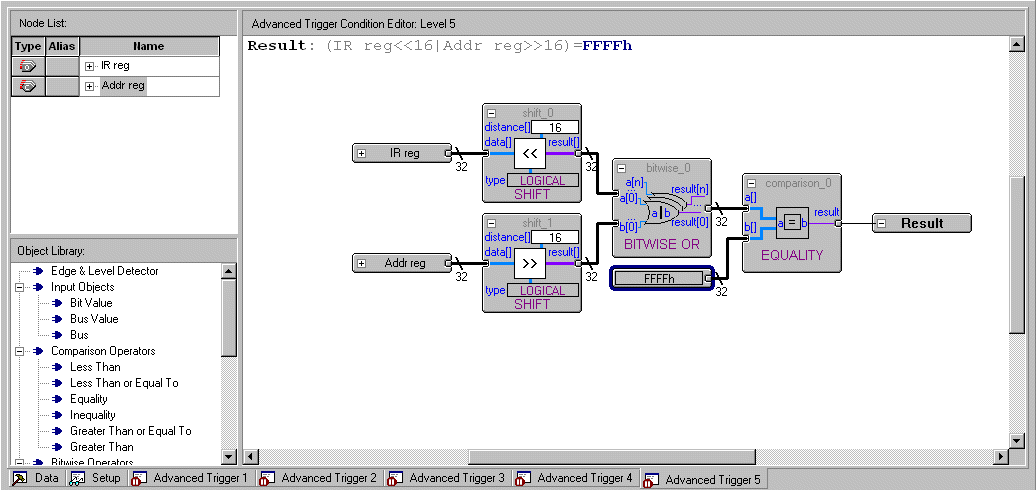 new value is compared against the value you specify. One Shift object moves the 16 lower bits of the instruction register into the upper half of